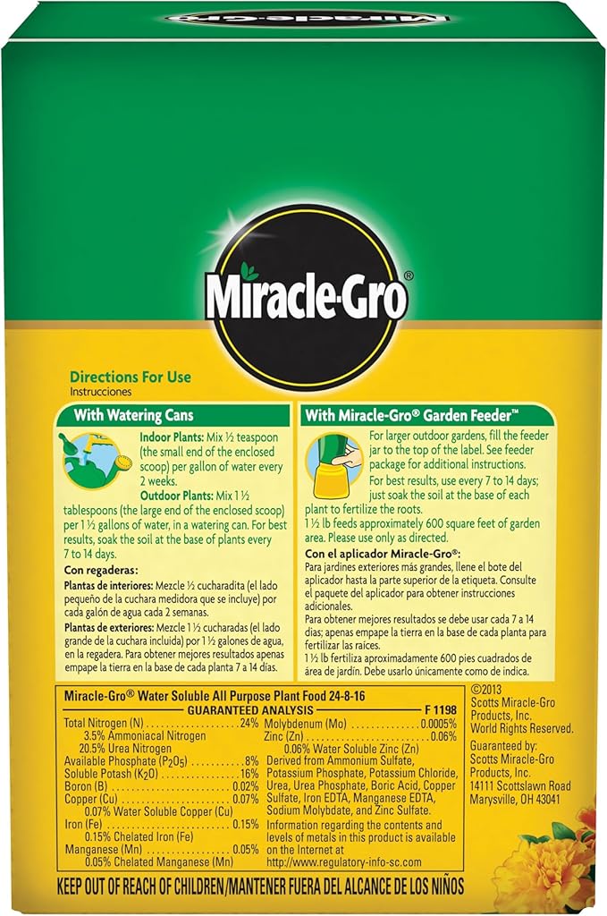 Miracle-Gro Water Soluble All Purpose Plant Food, For All Indoor or Outdoor Plants, Roses, Flowers, Vegetables, Houseplants, Trees, and Shrubs, 1.5 lbs
