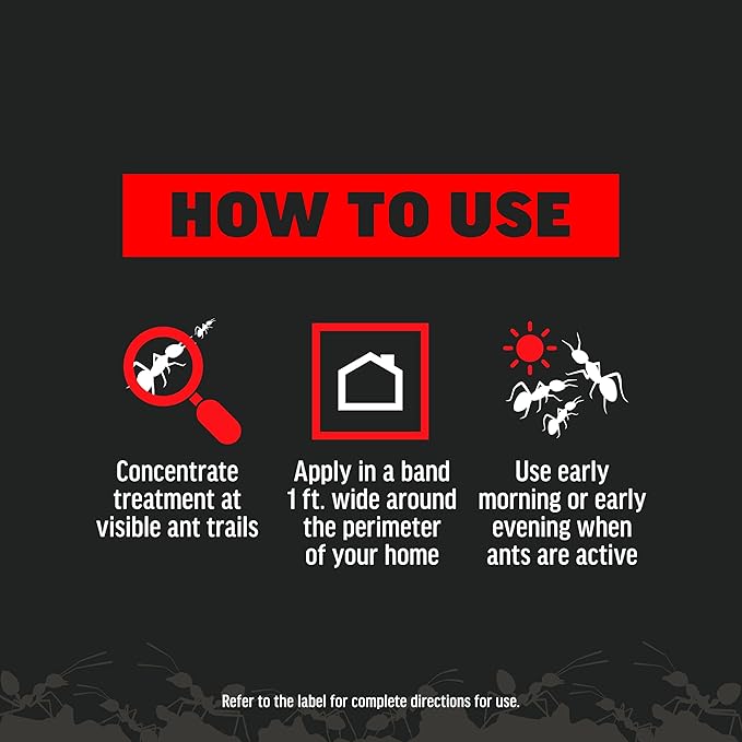 - USE ANY TIME ANTS ARE ACTIVE; for best results during hot weather, apply during cool early morning or early evening hours, when ants are most active; do not apply when the ground or grass is wet, rain is expected within 24 hours, or temperatures are below 50°F