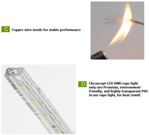 - [12V VS. 120VLED SMD rope light: (Both are exceptional Energy-Efficient)] [12v Advantage: Low voltage, smaller profile, high brightness and flexible to use in many application. Disadvantage is, transformer may need needed, and max length is only 16'.][120v Advantage: High brightness and flexible. Can plug directly into household power outlet. Thicker profile for better durability. Max run is 300'. ]