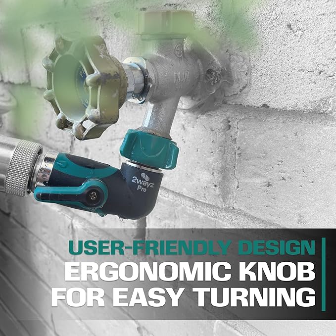 - Enhanced Control: Featuring a 90 degree hose elbow with two shut offs, manage water flow efficiently to different hoses or devices; allows for targeted watering; conserves water and ensures effective garden care