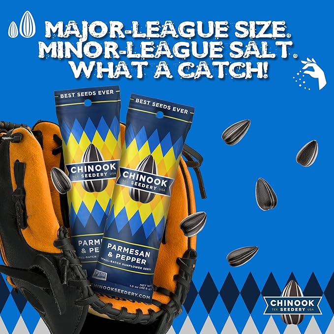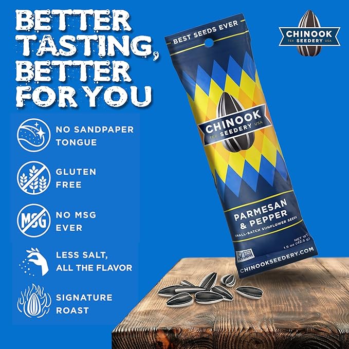 Chinook Seedery Low Sodium Sunflower Seeds – Parmesan & Pepper Flavor, Pack of 36, 1.5oz – Sunflower Seeds to Eat – Keto, Jumbo, Roasted, Baseball Snacks