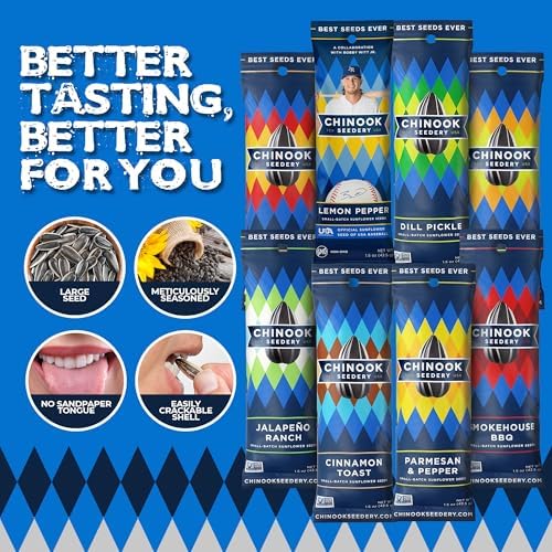 Chinook Seedery Low Sodium Sunflower Seeds Variety Pack of 36, 1.5oz – Sunflower Seeds to Eat – Keto, Flavored, Jumbo, Roasted, Baseball Snacks