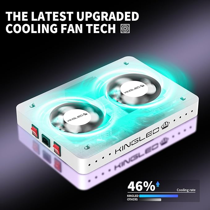 - Efficient Heat Dissipation: The aluminum heat sink and metal construction ensure excellent heat dissipation, keeping the temperature within optimal levels (50°f to 60°f); This cooling system prevents overheating, allowing the light to work efficiently without harming plants; Having the high-speed mute fans, the light remains quiet and stable, increasing its lifespan