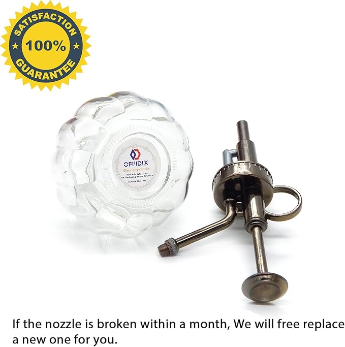 OFFIDIX Transparent Glass Watering Spray Bottle, 6.3 Inches Tall Vintage Style with Bronze Plastic Top Pump One Hand Plant Mister Glass Watering Can Indoor