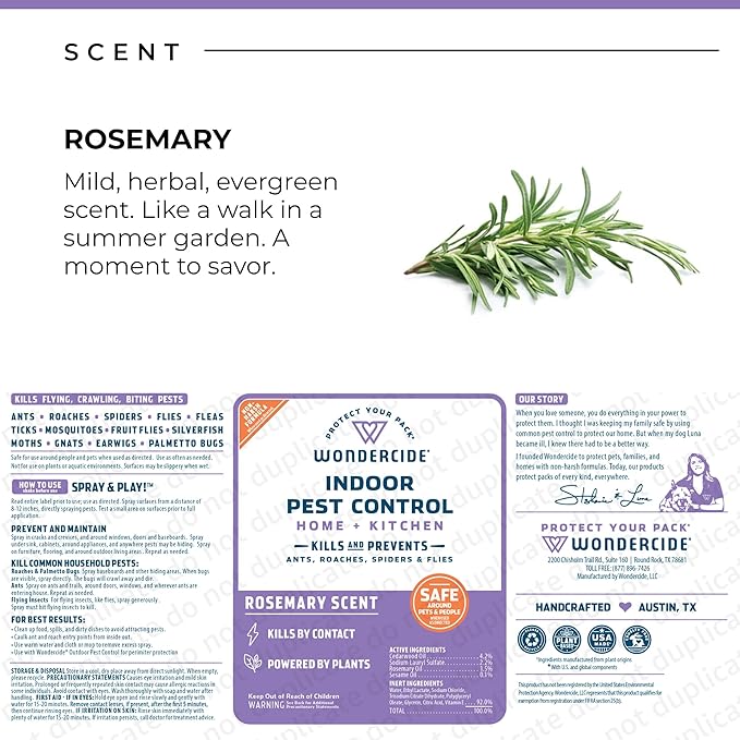 Wondercide - Indoor Pest Control Spray for Home and Kitchen - Ant, Roach, Spider, Fly, Flea, Bug Killer and Insect Repellent - with Natural Essential Oils - Pet and Family Safe — Rosemary 32 oz