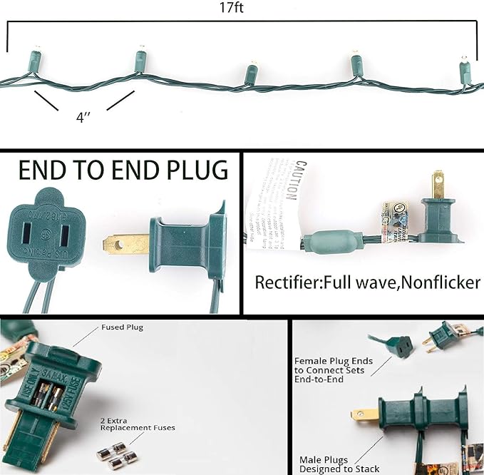 - UL listed and premium quality,LEDs use up to 90% less energy,the led string light is made with a male and female plug and 2 extra fuses for replacements