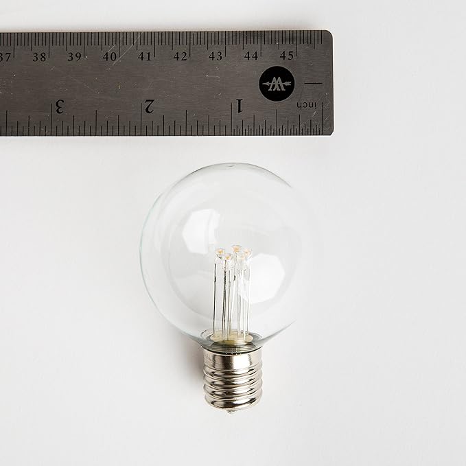 - Save energy with our C9 commercial G50 string LED lights! This set includes one commercial grade 25’ White outdoor light string and 20 G50 LED Clear 0.6 watt warm white glass light bulbs.