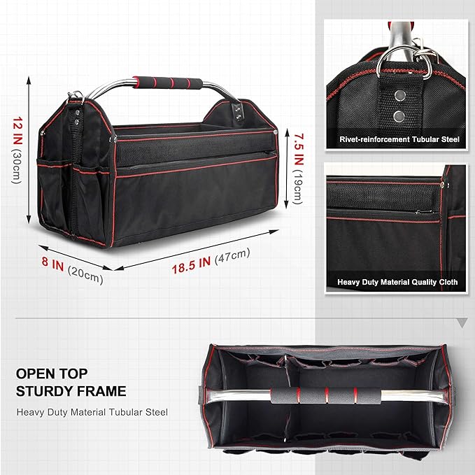- 【Foldable Open-Top Design】Designed for fast access, the open-top with rigid frame keeps the bag upright for excellent tool visibility and grab-and-go convenience. Foldable structure ensures compact storage when not in use