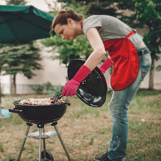- 【Handles All Your Hot Stuff】our heat grill gloves for cooking, backyards barbecuing, outdoor campfire grilling, dealing with hot logs, using your air fryer frying food, removing a hot coffee mug or bowl from the microwave, getting food in and out of the oven, the best choice for kitchen heat gloves.