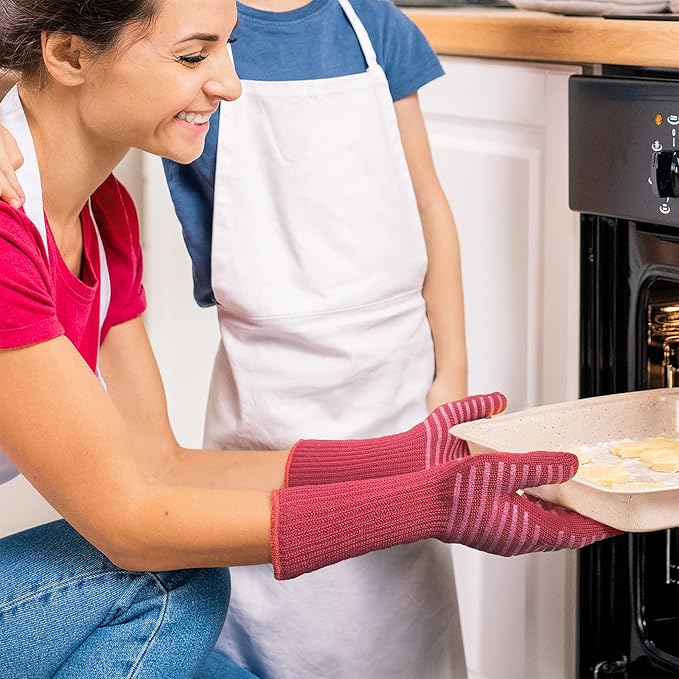 MIG4U BBQ Grill Gloves,Oven Gloves Extreme 500 degrees Heat Resistant grilling gloves with Food Grade Non-Slip Silicone Dots for Cooking, Grilling, Baking, Smoker, Barbecue, Kitchen(13" Red)