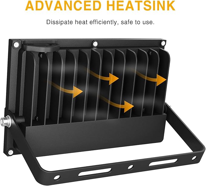 - Efficent Cooling: This flood light fixture is designed with a fin-type heat sink, which means it acts like a radiator to dissipate heat