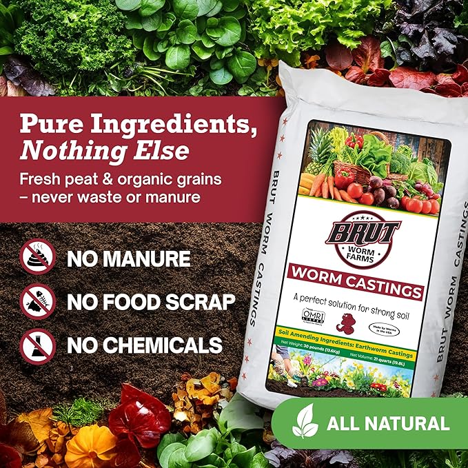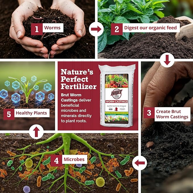 - SUPERCHARGE YOUR GARDEN: Elevate your plants' growth with premium organic Brut Worm Castings. Our certified organic formula guarantees optimal nutrition for your indoor and outdoor plants.