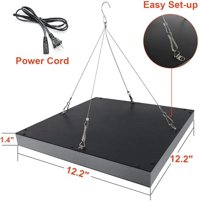 - 🌹[Low Heat] ABS plastic material molding hydroponic grow lights panel , excellent Heat control, runs cool and quiet, no harm to your plants. Square shape design maximizes the beam to cover 3ft by 3ft area of plants, recommended to hang at around 6-10 inches for seedling.