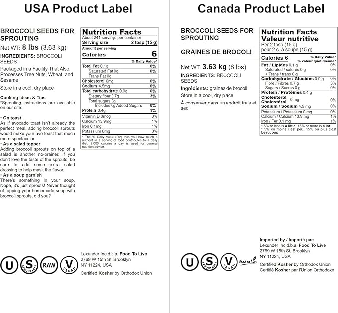 - ✔️ EASY TO SPROUT & DO NOT REQUIRE SOIL: Food to Live Broccoli Seeds do not require soil to be sprouted. Use a glass jar with a mesh lid or a plastic sprouter. Use soil to grown broccoli microgreens only. Sprouts germinate in water while microgreens grow in soil.