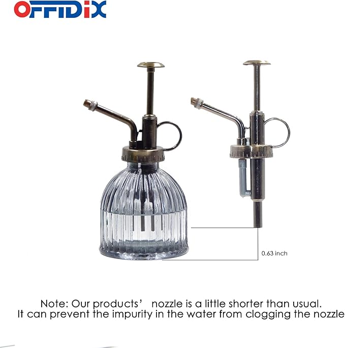 - Material: The top pump is made of plastic which prevent rust, the pneumatic nozzle design of the plant atomizer creates a fine spray effect. And the spray bottle is made of thickened glass, sturdy and durable.