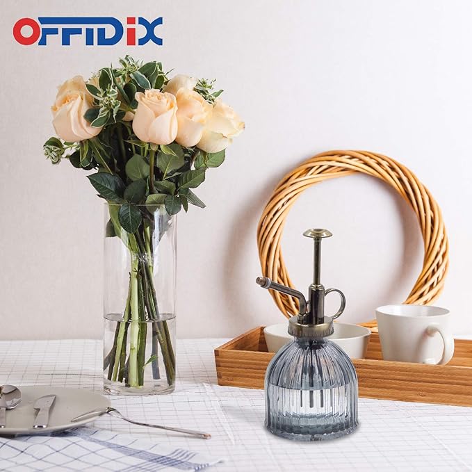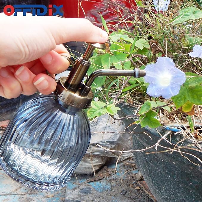 OFFIDIX Plant Mister plant water Spray Bottle, 6.3" Tall Vintage Style with Bronze Plastic Top Pump One Hand Glass Watering Can for Indoor Potted Plants Terrariums (Dark Gray)
