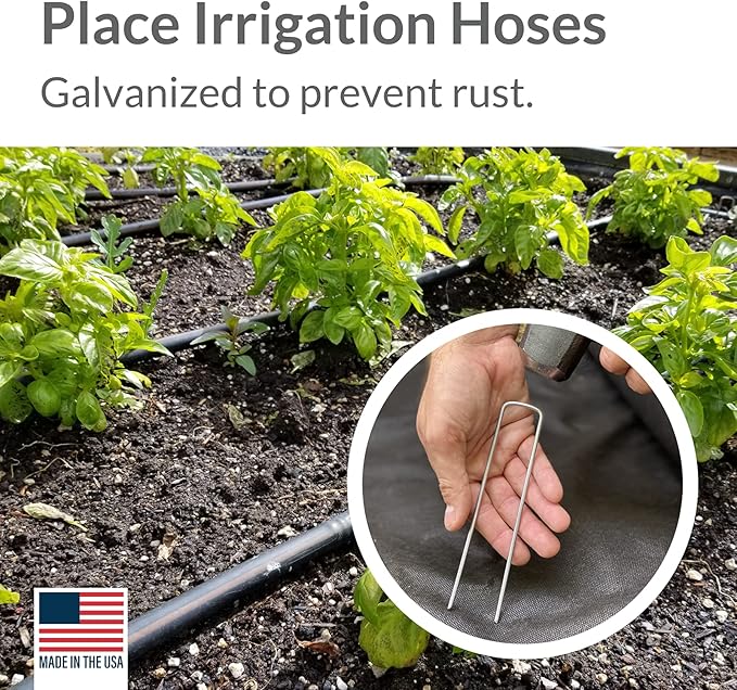 Pinnacle Mercantile USA Made 200 Pack Garden Landscape Staples Weed Barrier Fabric Stakes Galvanized 6 inch Pins Anti Rust Sod Staple 11 Gauge Steel