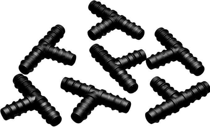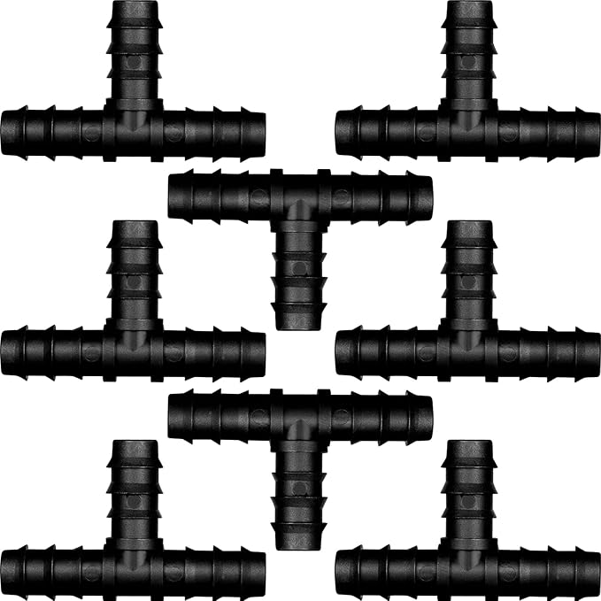 Maitys 8 Pieces 1/2 Inch Drip Irrigation Fittings Parts Soaker Hose Repair Kit Inline Barb Drip Irrigation Hose Connectors Plastic Tubing End Stop for Garden Lawn Sprinkler Systems(Tee)