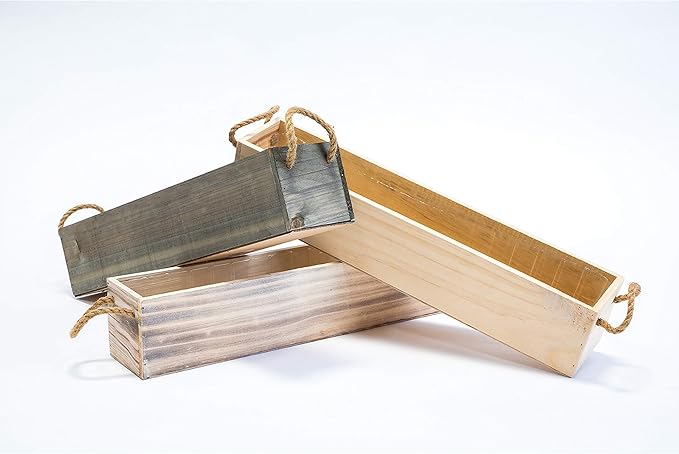 Wooden Planter Box, Rustic Barn Wood/Whitewash with Plastic Liner l Garden Decor l Restaurant and Wedding Decorations l Table Centerpiece (20x4 w Handle Set of 2, Rose Wood)