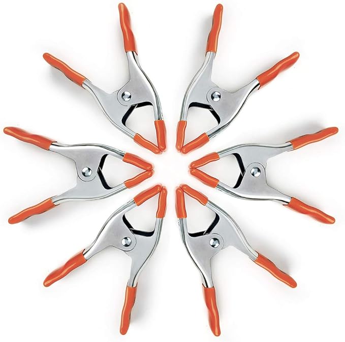PONY 6-inch Heavy Duty Spring Clamps Set, 2-inch Jaw Opening, Nickel-plated Steel Spring Clips Clamps with Protected Rubber Handles and Tips, 6-Pack