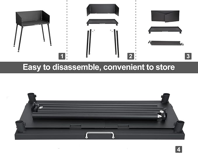 - Made of heavy duty steel with heat-resistant coating, the camping cooking table will last for years and show no signs of damage from the hot coals;