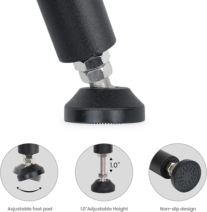 - Both assembly and disassembly is easy and takes no more than 3 minutes; The camp table features four non-slip foot pads that are adjustable both in height(1") and direction for sitting on variety of ground surface;