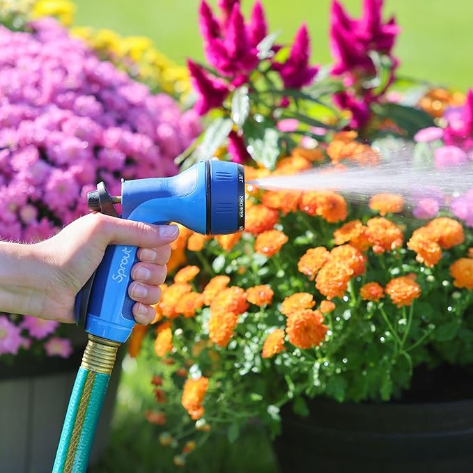 Sprout 65123-AMZ Metal Rear Trigger 7-Pattern Nozzle with QuickConnect Product Adapter Amazon Bundle, Blueberry Blue