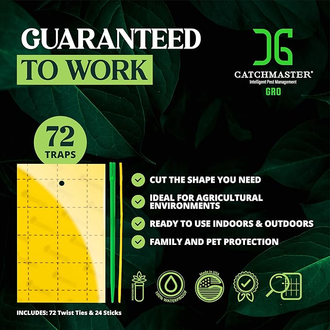 Catchmaster GRO Yellow Regular Double Sided Sticky Traps 72PK, Adhesive Bug & Fruit Fly Trap, Pest Control for Home, Farm, Garden, Hydroponics & Greenhouse, Protect Live Plants Indoor & Outdoor