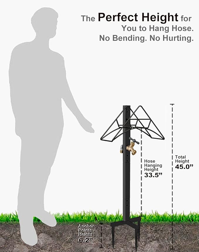 - Wide Range of Uses - Because of lightweight and easy to move, the water hose stake is well suitable for gardens and courtyards, and can stand on concrete independently. Even in cold winter or rainy days, there is no need to worry about the impact of severe weather