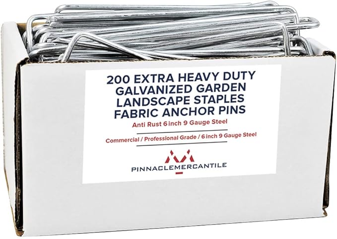 Pinnacle Mercantile 200 Pack Galvanized Garden Stakes Landscape Staples Extra Heavy Duty Sod Ground Anchors Anti Rust 6 inch Metal Pins 9 Gauge USA Made