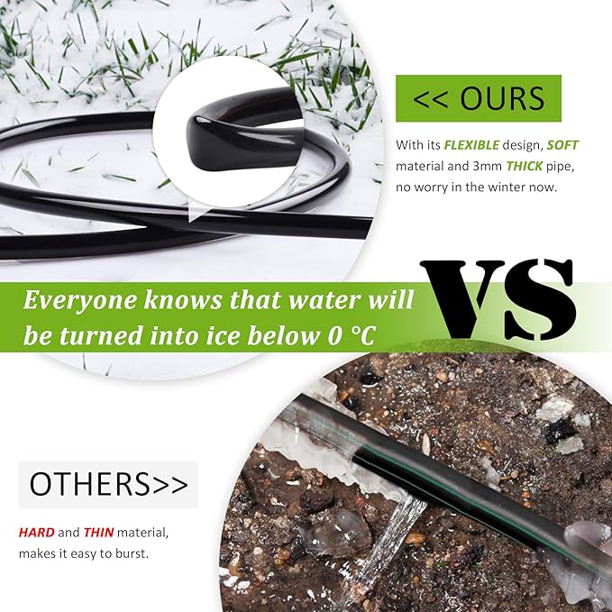 - MIXC drip hose made by high quality. It can be left out year-round, buried or on the surface, in any weather.