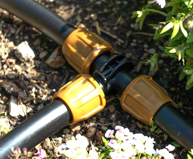 (5-Pack) 1/2" Universal Nut-Lock Tee Drip Irrigation Tubing Compression Fitting Connector (Fits All Tubing .530, 600 and .620 ID (16, 17, 18 mm) - (Tee 5-Pack)