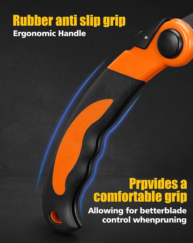 - ◆【SCIENTIFIC DESIGN -- SECURE LOCK MECHANICS】: Folding saw well-built utility saw design provides a premium tool, Superior folding and quick secure locking unlocking system keeps blade firmly in place during use. OPEN/CLOSE FOLDING SAW : Gear lock must be pressed and held down to open/close the saw
