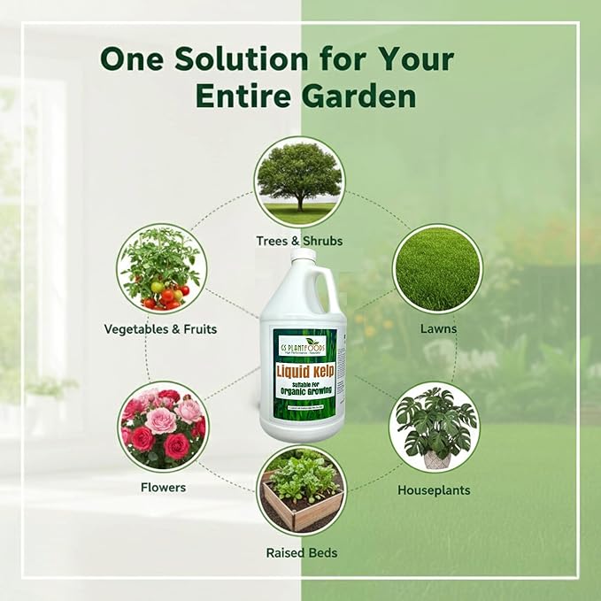 GS Plant Foods Liquid Kelp Fertilizer – Suitable for Organic Growing, OMRI Listed Seaweed Concentrate for Lawns, Gardens & Soil - 1 Gallon (Makes Up To 800+ Gallons)