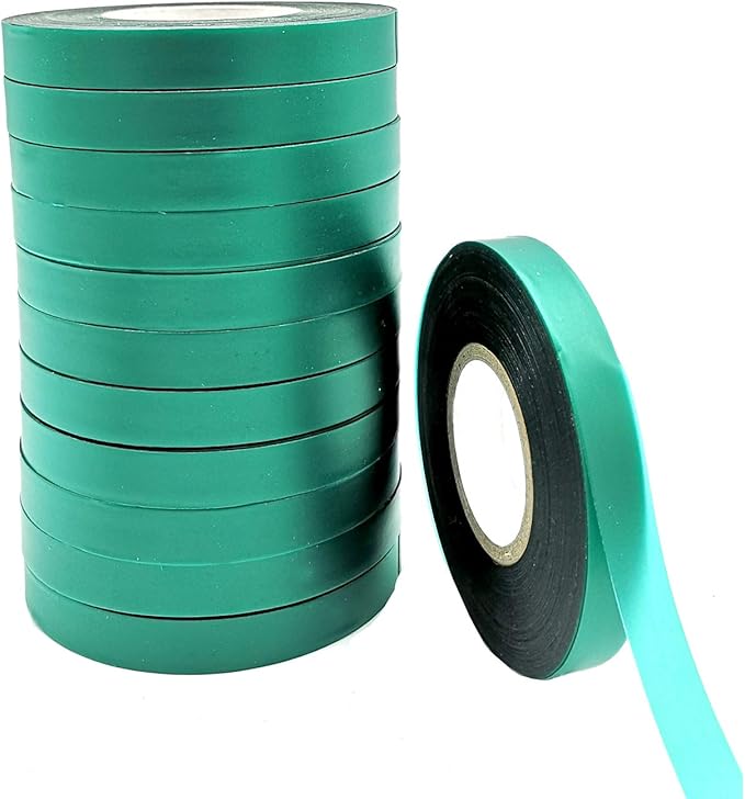 12 Rolls 150 Feet Stretch Tie Tape 0.5 Inch Garden Tie Tape Thick Plant Ribbon Garden Green Vinyl Stake for Indoor Outdoor Patio Plant Use