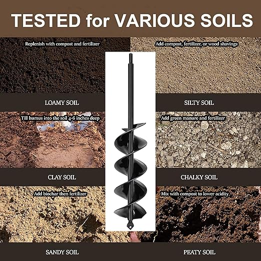 - 【Easy to use】Insert the soil auger into the drill and tighten, start to dig, you will get hundreds of planting holes in minutes. We suggest using an 18V or greater cordless drill with an adjustable drill chuck to maximum the drill bit auger performance.