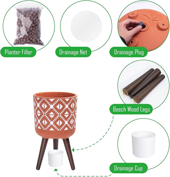 - Functional Accessories: Includes a drainage hole, optional plug, mesh net, water catch cup, and ceramic fillers for optimal plant care.