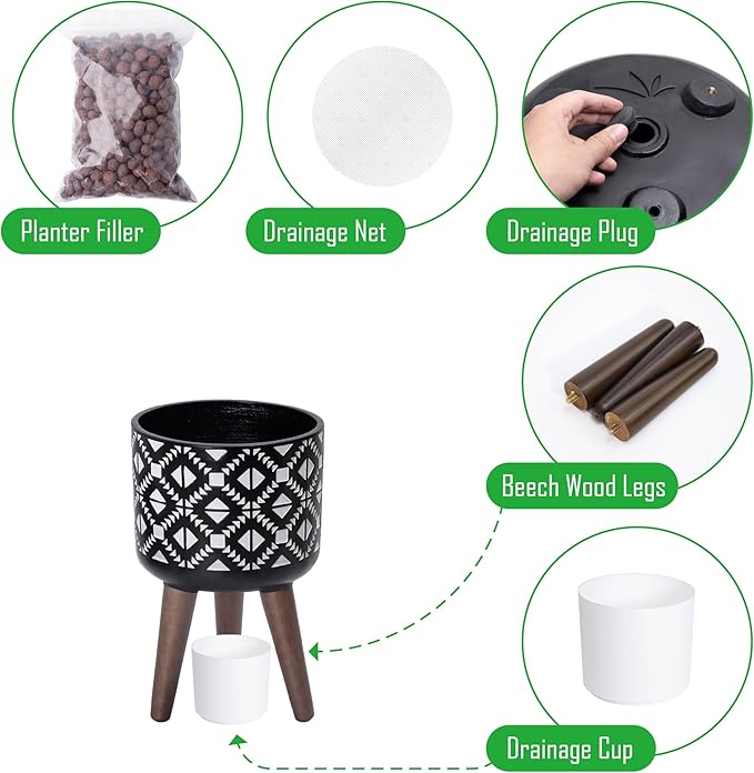 - Functional Accessories: Includes a drainage hole, optional plug, mesh net, water catch cup, and ceramic fillers for optimal plant care.