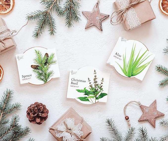 - A Trio with Meaning: Aloe brings healing and renewal, Christmas Basil is a symbol of good luck and blessings, and Spruce represents everlasting life and strength. A thoughtful mix that makes every planting feel special.