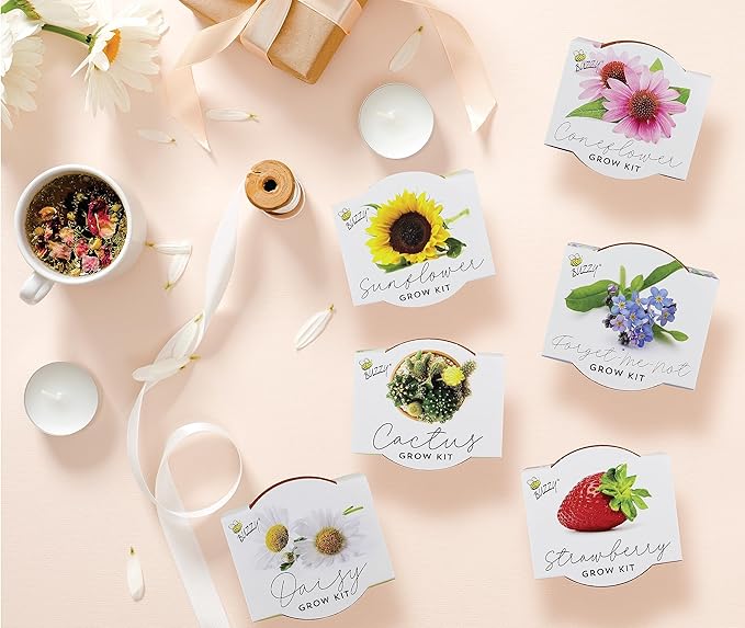 - Complete Mini Grow Kit – Includes 6 genuine terracotta pots with seed packets including Daisy Silver Princess (Chrysanthem maximum), Sunflower Dwarf Sunny (Helianthus annuus), Chinese Forget-Me-Not (Cynoglossum amabile), Cactus All Kind (Mixture), Alpine Strawberry (Fragaria vesca), and Purple Coneflower (Echinacea purpurea) and premium coconut husk growing medium for easy indoor planting.