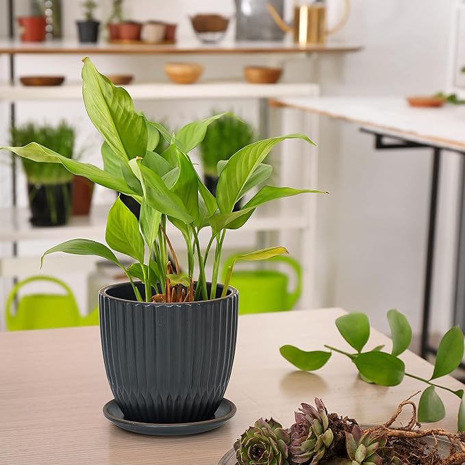 - Chic Design: Chic aesthetic to your home with ribbed pattern ceramic pot.
