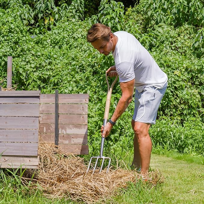 - STRONG D-GRIP - This digging fork is easy to use, and the solid y-handle is made of ash wood. It has strong grip and won't loosen over time. The handle design also makes it easy to hang on a hook when not in use! Ideal length to avoid backache.