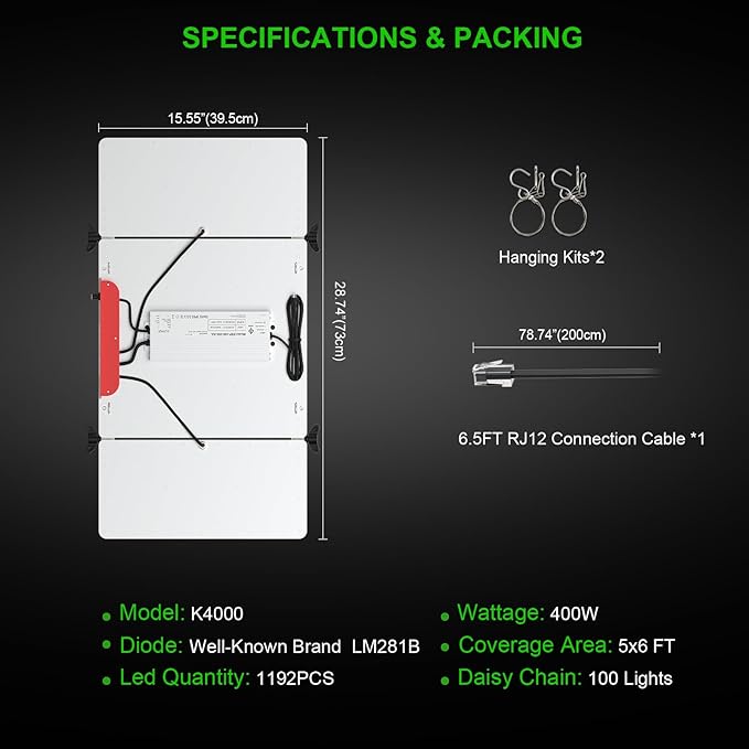 - DAISY CHAIN ADDED & DIMMABLE GROW LIGHTS - Based on original K4000 plant grow light, AGLEX newest K4000 plant light adds daisy chain function, achieving to connect multi grow lights (max 100pcs ) and control them at the same time, it's very convenient for commercial growing. Stepless 0-100% dimmer knob available, it can help you freely adjust the brightness of the plant light, allowing flexibility to obtain perfect growth performance for each growing phase.