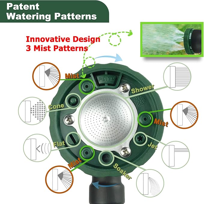 - Patent Mist and Shower Watering Patterns: Never before soft and powerful misty sprayer wand offers fine water drops for delicate flowers, the real rain shower spray wand nozzle centralizes the water flow to where to water hanging baskets or wash easily