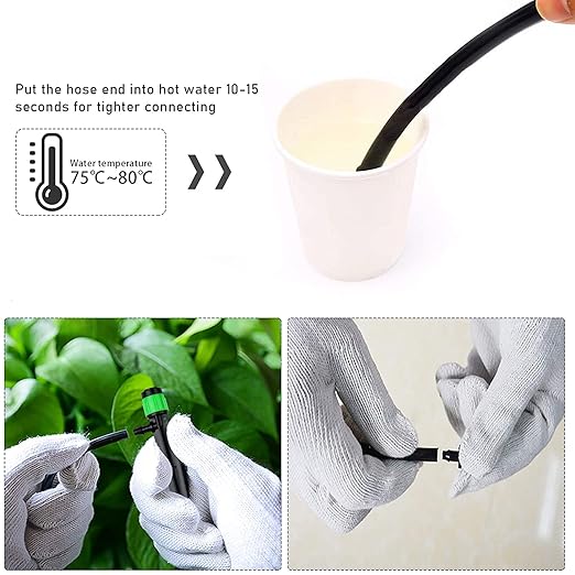 - 【Design】: Irrigation Drippers Connectable to 4 mm/7 mm or 0.16”/0.28”( inner/outer diameter) tubing, ideal for automatic drip and sprinkle watering system for flower bed, plant bed, vegetable garden, garden, lawn, green house, plant pots.