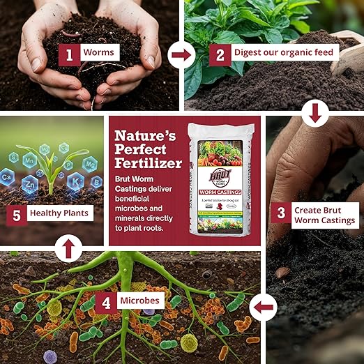 - SUPERCHARGE YOUR GARDEN: Elevate your plants' growth with premium organic Brut Worm Castings. Our certified organic formula guarantees optimal nutrition for your indoor and outdoor plants.