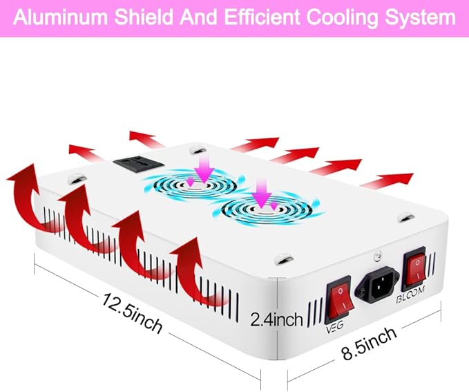 - 🌿 Upgraded & Efficient Cooling System: Our plant grow lamp has two built-in high-speed silent cooling fans,upgraded aluminum radiator and temperature controller,forming a powerful cooling system. Even when working for a long time,the LED grow light can be kept below 50°F. Good heat dissipation ensures the long life of the grow lamp.(lifespan;50000 hours)