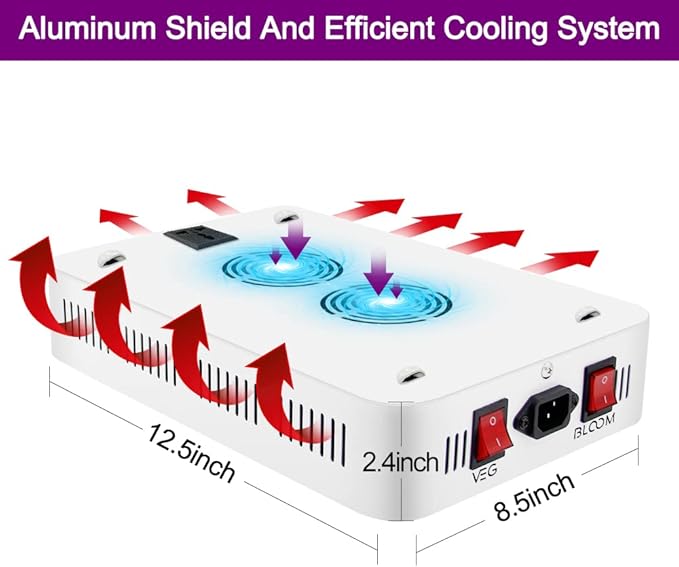 - Efficient Cooling System: The plant growing lamps feature a cooling system with 2 high-speed fans and an aluminum heat-sink. Working at 50 - 60°F, the lighting won't damage plants, enabling longer lighting and safeguards the LED grow light for a long lifespan.