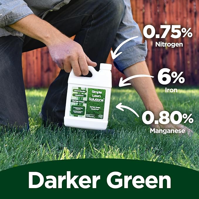 Simple Lawn Solutions - Liquid Iron Fertilizer Darker Green - Chelated Micronutrients - Concentrated Green Booster for Turf Grass, Indoor Plants and Outdoor Garden (32 Ounce)