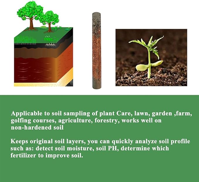 - Easy to get Soil Sample out of Tube-Designed with special structure in tube tip, do not worry soil compacted and don’t worry soil clog up in tube, make it easy to take out soil from tube, and keeps original soil layers, you can quickly analyze soil profile such as: detect soil moisture, soil PH, determine which fertilizer to improve soil.